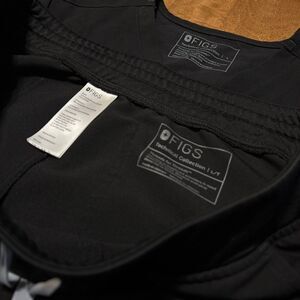 This FIGS women’s scrub set includes the Zamora Jogger Scrub Pants in size Large Tall and the Katarina One Pocket Scrub Top in size Large. Both pieces are black and designed for comfort and performance. The jogger pants feature an athletic fit with multiple pockets, while the Katarina top offers a classic one-pocket design. Perfect for medical professionals looking for style and functionality.