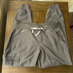 Great condition FIGS Joggers. Soft grey stretch scrubs joggers. Pockets, elastic waistband, drawstring. Side zippered pocket. Tapered cuffs. This style is from the Technical Collection.