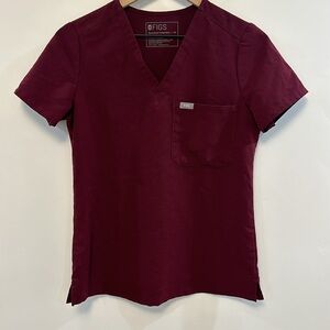 FIGS burgundy short-sleeve v-neck scrub top