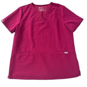 FIGS Catarina Two -Pocket Scrub Top Women's Size L Pink Magenta V-Neck Medical Uniform. Renowned. Good Condition. Please see all photos for details