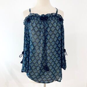 FIGUE 100% silk off shoulder Pom Pom blouse