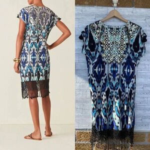 Design Details: V-Neck, Sequin Embellishments, Short Dolman Sleeves With Tassel Accents And Fringe Hem