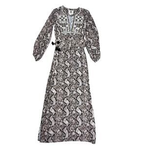 FIGUE Emani Snakeskin-Print Blouson Sleeve Dress Size XS