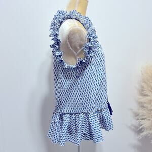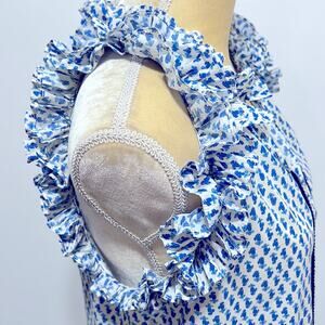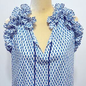 FIGUE Fabiana Ruffle Tassel Print Blouse Size S in Blue & Ivory