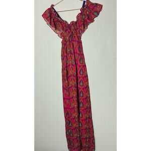 FIGUE Womens Floral Print Pink Cold Shoulder Waist Tie Tassel Maxi Dress Size XS