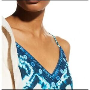 FIGUE saks turquoise indigo blue white dyed Shibori print cotton Abby midi dress