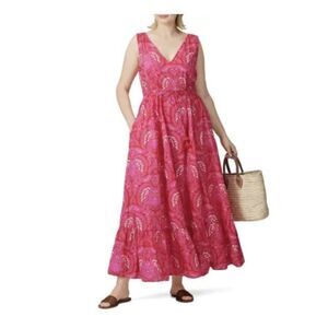 FIGUE Dress Womens Large Pink Cotton Sleeveless Indira Maxi Cinch Waist Pockets