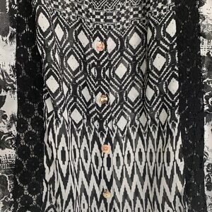 FIGUEROA & Flower blouse in size 1x. Excellent condition. No rips or stains. Armpit to armpit is approx 23.5 inches across. The length is approx 25 inches. Sleeve are approx 20 inches long with elastic. (See photos) Chiffon like material
