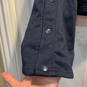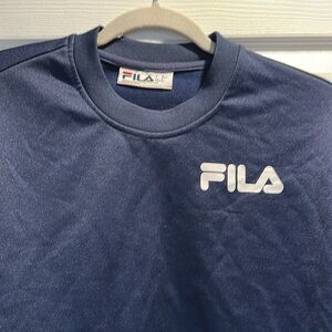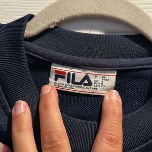 Gently worn Fila Aurora Navy Blue Snap Sleeve Crop Top Sweatshirt women’s size small. Navy blue, polyester material, round neck, long sleeves- flared at wrists, cute snap detail on sleeves, crop length. Offers accepted!