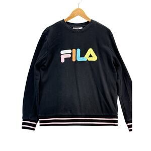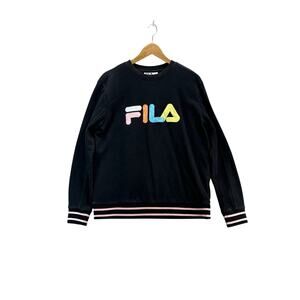FILA Black Pastel Logo Crewneck Retro 90s Sweatshirt Women Large