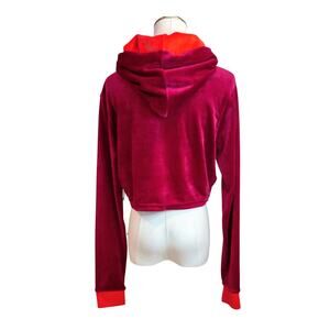 FILA Cropped Velour Hoodie in Deep Red and Vibrant Orange NWT Size Med.
