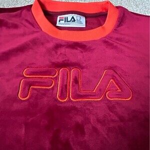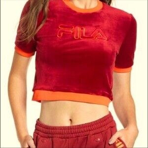 FILA Emiliana Velour Womens Ringer Crop Top Berry Red with Orange Medium