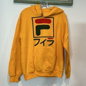 FILA JAPAN LOGO YELLOW HOODIE SWEATSHIRT WOMEN’S SIZE SMALL streetwear flawed