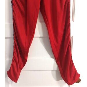FILA Red Athletic Sporty Gym Training Workout Streetwear Hip Hop Retro Comfort Jogger Ush Tape Pants with Side Stripes, Elastic Waist, Drawstring, Zippered Ankles, Side Pockets, Back Zip Pocket & Logo