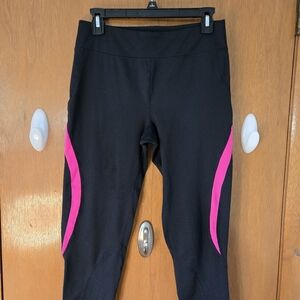 Stylish ladies' leggings in black with vibrant pink accents. Perfect for active days, size Medium.