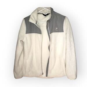 FILA Lined Jacket Size M. White with gray accents. No rips snags or piling. Zipper works.
