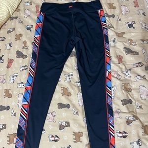 Super cute matching set! Tank is XL, leggings are L. Very comfy and flattering, but I need to downsize. Pet friendly, nonsmoking home.