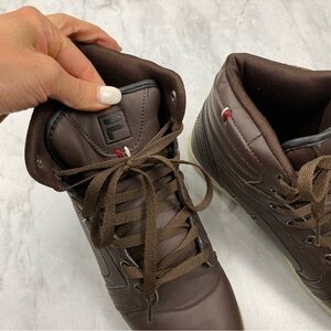 FILA: Men's Brown Leather Lace Up High Tops Sneakers Tennis Shoes Boots Shoes 10