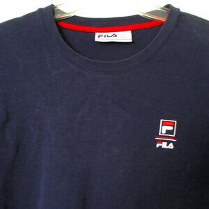 FILA Mens L/S Blue Stretch Crew Cotton Sweater. Size Large*. Armpit-to-armpit 23.5", Length 28.5". 95/5% Cotton/Spandex in Dark Blue. *Labeled XL however there may have been some slight shrinkage, current measurements & actual fit more accurately "Large". No sign of wear, stain or defect.