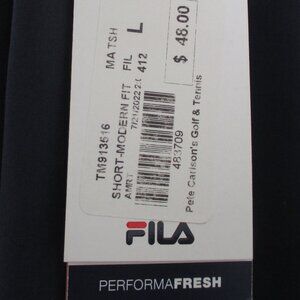 FILA Mens Navy Drawstring Elastic Tennis Short Pant. Size 36W-40W or Large, Inseam 9", Rise 13". 92/8% Polyester/Elastane in Navy. New with Tags, original M.S.R.P. $48.00, suitable for gifting.
