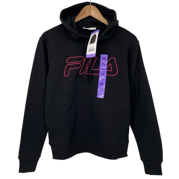 FILA NWT Black Hoodie Sweater Fila Logo Size XS Loungewear Cozy Warm Hooded Pullover Athleisure