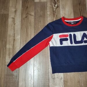 FILA Navy Blue Red and White Cropped Sweatshirt Women's Size Medium EUC
