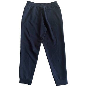These FILA navy jogger sweatpants are a great everyday essential—comfortable, sporty, and easy to pair with anything. Made from a soft 96% polyester / 5% spandex blend, they offer stretch and durability. Features include an elastic waistband, cuffed ankles, and convenient zippered pockets.