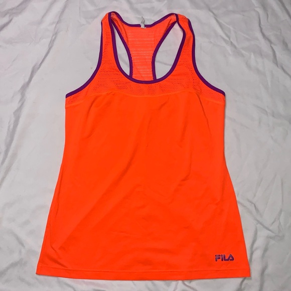 Women’s FILA Performance Workout Tank Size Large Fitted Style Orange with purple trimming Like new, no tags