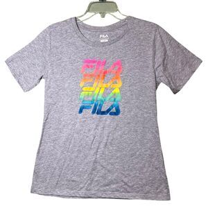 FILA Shirt Womens Large Heather Gray Rainbow Gradient Logo Graphic Tee T-Shirt