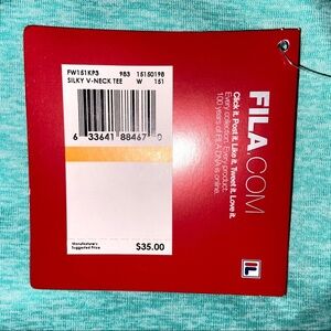 Brand new FILA active top Silky v-neck tee Size- S Color- Aquaheather 93% Polyester, 7% Spandex Made in Egypt