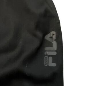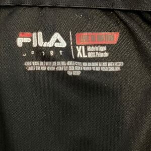 FILA Sport men’s athletic shorts in black with heathered green side panels. Lightweight 100% polyester fabric with a drawstring waistband, side pockets, and quick-dry comfort — perfect for workouts, running, or everyday wear. Elastic waistband with FILA logo detailing.