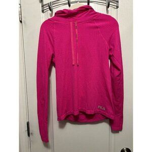 FILA Sport Running Top Hot Pink Long Sleeve Shirt Hooded Women’s Large Fitted