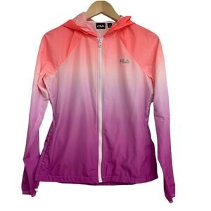 FILA Sport Windbreaker Jacket Ombre Neon Hooded Zipper Lightweight Rain