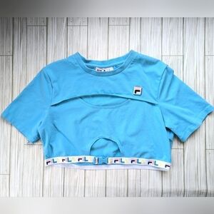 FILA Trish Crop Top Buckle Front Banded Crewneck in Blue Women's Size XL