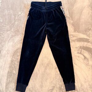 Pants Features: Jogger style, elastic waistband, cuffed ankles, logo tape down sides