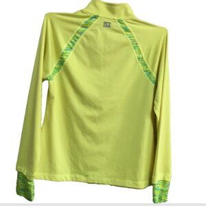FILA Women L Pullover Athletic Performance Running 1/4 Zip Layered Yellow Green