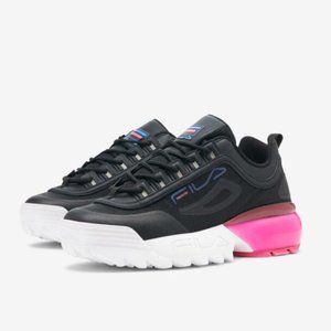 FILA Womens Disruptor 2A Black White Magenta Sneakers NWB