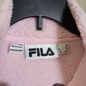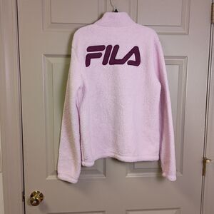 FILA Womens Pullover Sweater Size Medium Pink 1/4 Zip Fuzzy Spellout