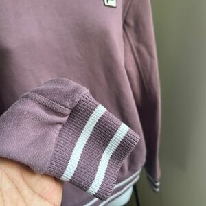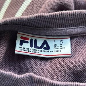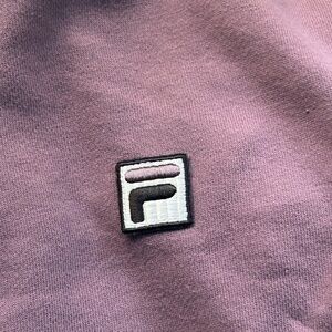 Comfy purple sweatshirt with FILA logo detail. Features white stripe accents. Great condition from a smoke-free home.