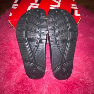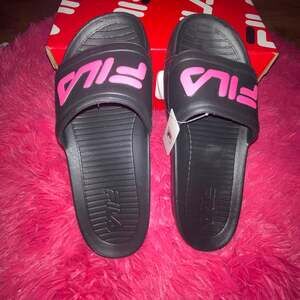 FILA Women's Sleek Slide LT Black‎ Sandals Pink Logo Women Size 11 Men Size 10