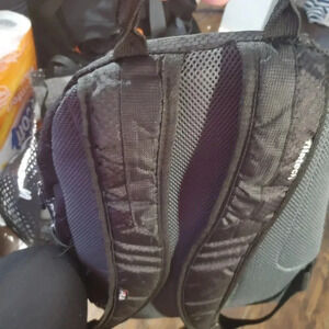 pre-loved with light signs of use. No damage and fully functional. lots of pockets and a place to hold your laptop or tablet, books,pens pencils and all other needed items.