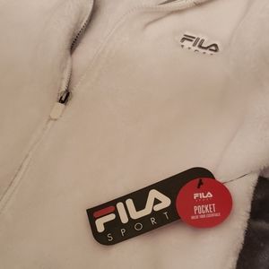 Snow white FILA jacket. New with tags. Super soft. Zipper sport pockets. Never worn. Smoke and pet free home. Size Small