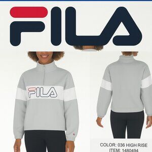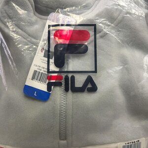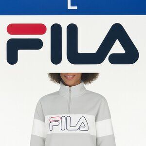 FILA ladies’ Logo 1/2 Zip Fleece Jacket Sweater. Color: Gray /White, L