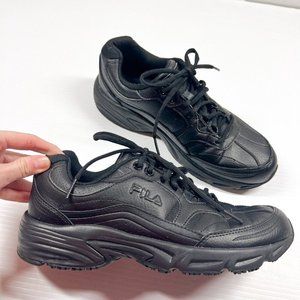FILA womens Memory Workshift Slip Resistant Shoe Size 9 Black Leather Lace Up