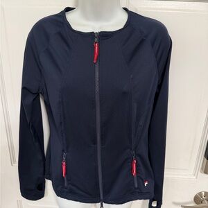 Fila navy zip up jacket sz small is in perfect condition like new. 2 Front zip pockets. Spotless condition. Measures flat pit to pit 19 inches length 24 inches. Spandex added for stretch