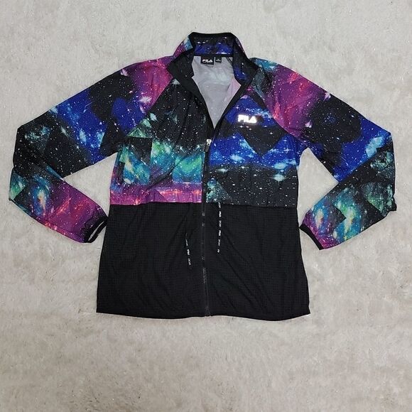 FILA SPORT BLACK GALAXY NEBULA ACTIVE RUNNING WINDBREAKER, SIZE MEDIUM