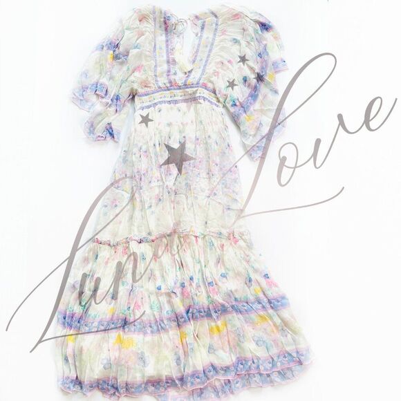 NWT! Fillyboo Angel Maxi Dress In Flowerbomb Iris. Introducing the Angel Maxi Dress in Flowerbomb Iris. Crafted in a luxe chiffon, with ruffle detailing, kimono sleeves & our deep V-neck construction.