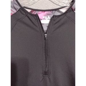 FILO Athletic Tee Women's Small Stretchy 1/4 Zip Black Red Pink Geometric Print