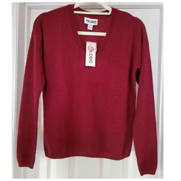 FILORO 2-ply 100% Cashmere sweater in Merlot, Size XS, NEW with TAG.