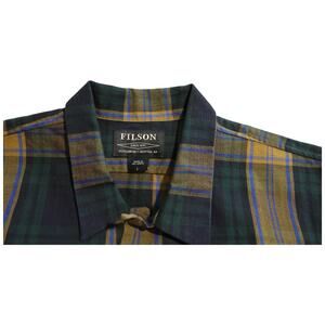 FILSON Rustic Short Sleeve Camp Shirt Golden Tan/Navy Size L